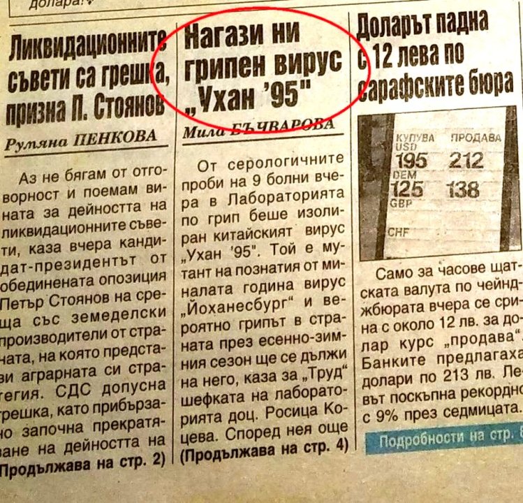 Само няколко месеца преди излизането на самата статия страната ни е поразена от "редовната" грипна епидемия, когато на ден у нас се разболяват по 10 000 души, докато днес с Covid-19 у нас се заразяват по стотина души дневно, което е 1% в сравнение със заболелите през 1996 г.